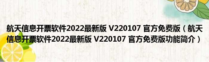 航天信息开票软件2022最新版 V220107 官方免费版(航天信息开票软件2022最新版 V220107 官方免费版功能简介)