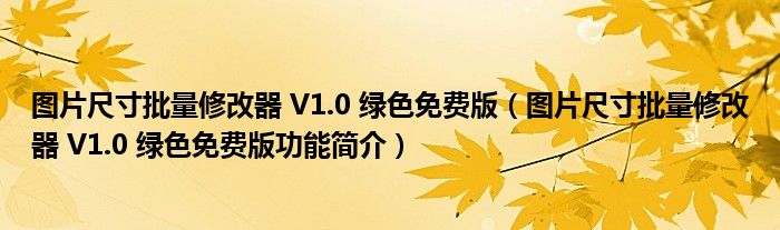 图片尺寸批量修改器 V1.0 绿色免费版(图片尺寸批量修改器 V1.0 绿色免费版功能简介)