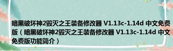 暗黑破坏神2毁灭之王装备修改器 V1.13c-1.14d 中文免费版(暗黑破坏神2毁灭之王装备修改器 V1.13c-1.14d 中文免费版功能简介)
