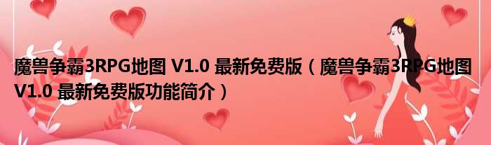 魔兽争霸3RPG地图 V1.0 最新免费版(魔兽争霸3RPG地图 V1.0 最新免费版功能简介)
