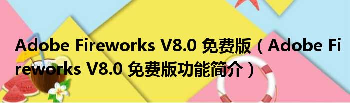 Adobe Fireworks V8.0 免费版(Adobe Fireworks V8.0 免费版功能简介)