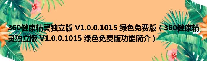 360健康精灵独立版 V1.0.0.1015 绿色免费版(360健康精灵独立版 V1.0.0.1015 绿色免费版功能简介)