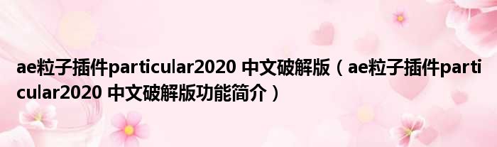 ae粒子插件particular2020 中文破解版(ae粒子插件particular2020 中文破解版功能简介)