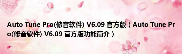 导读 大家好,关于Auto Tune Pro(修音软件) V6 09 官方版,Auto Tune Pro(修音软件) V6 09 官方版功能简介这个很多人还不知道,小勒来为大