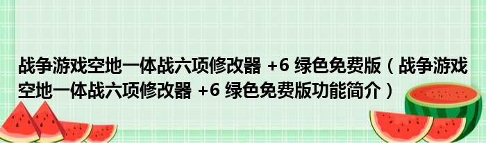 导读 大家好,关于战争游戏空地一体战六项修改器 +6 绿色免费版,战争游戏空地一体战六项修改器 +6 绿色免费版功能简介这个很多人还不知道,小