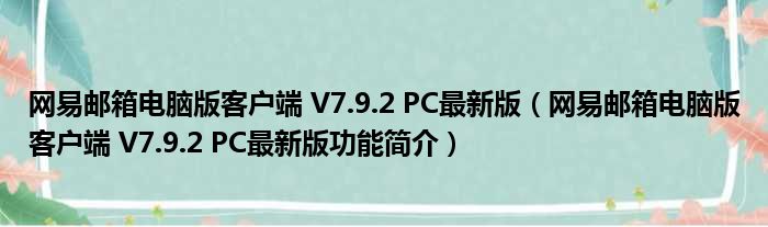 网易邮箱电脑版客户端 V7.9.2 PC最新版(网易邮箱电脑版客户端 V7.9.2 PC最新版功能简介)