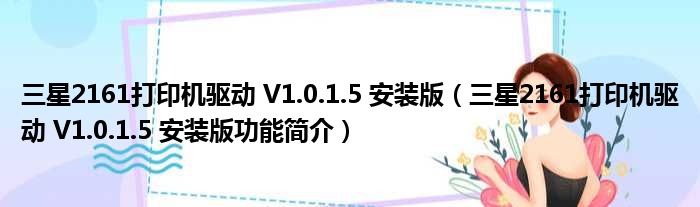 三星2161打印机驱动 V1.0.1.5 安装版(三星2161打印机驱动 V1.0.1.5 安装版功能简介)