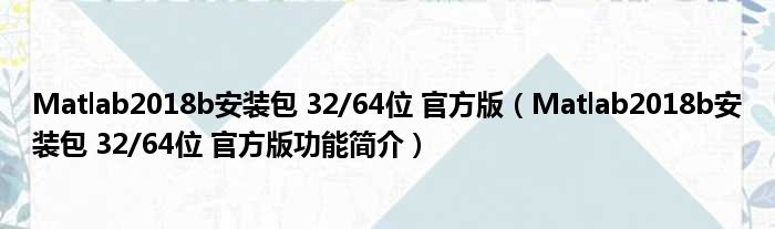 Matlab2018b安装包 32/64位 官方版(Matlab2018b安装包 32/64位 官方版功能简介)