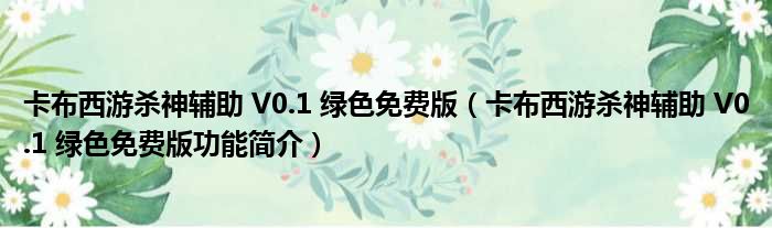 卡布西游杀神辅助 V0.1 绿色免费版(卡布西游杀神辅助 V0.1 绿色免费版功能简介)