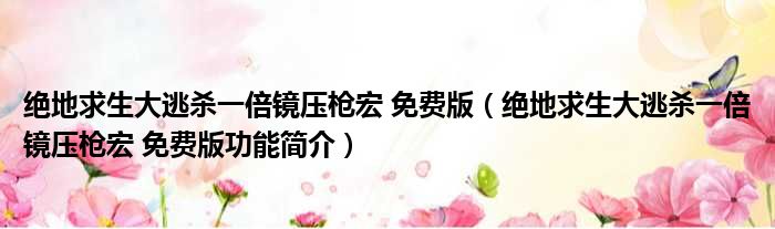 导读 大家好,关于绝地求生大逃杀一倍镜压枪宏 免费版,绝地求生大逃杀一倍镜压枪宏 免费版功能简介这个很多人还不知道,小勒来为大家解答以上的