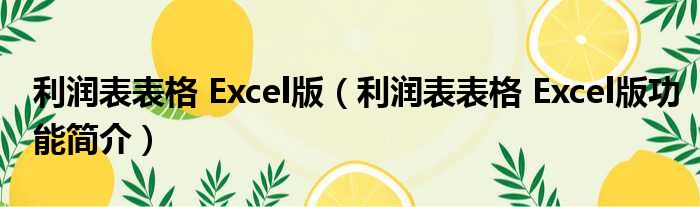 利润表表格 Excel版(利润表表格 Excel版功能简介)