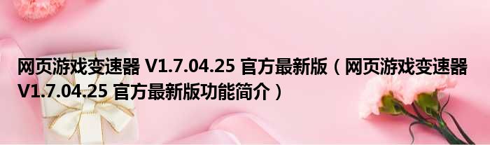 网页游戏变速器 V1.7.04.25 官方最新版(网页游戏变速器 V1.7.04.25 官方最新版功能简介)