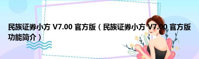 民族证券小方 V7.00 官方版(民族证券小方 V7.00 官方版功能简介)
