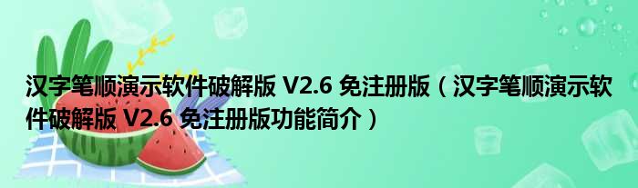汉字笔顺演示软件破解版 V2.6 免注册版(汉字笔顺演示软件破解版 V2.6 免注册版功能简介)