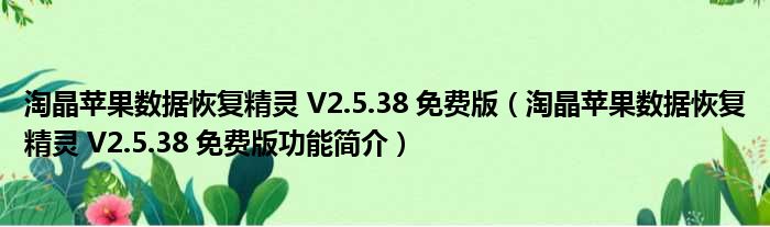 导读 大家好,关于淘晶苹果数据恢复精灵 V2 5 38 免费版,淘晶苹果数据恢复精灵 V2 5 38 免费版功能简介这个很多人还不知道,小勒来为大家解答
