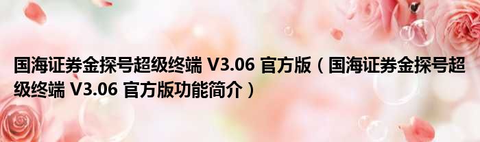 导读 大家好,关于国海证券金探号超级终端 V3 06 官方版,国海证券金探号超级终端 V3 06 官方版功能简介这个很多人还不知道,小勒来为大家解答