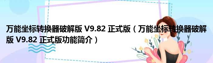 导读 大家好,关于万能坐标转换器破解版 V9 82 正式版,万能坐标转换器破解版 V9 82 正式版功能简介这个很多人还不知道,小勒来为大家解答以上