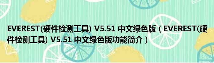 EVEREST(硬件检测工具) V5.51 中文绿色版(EVEREST(硬件检测工具) V5.51 中文绿色版功能简介)