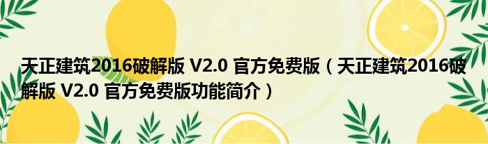 天正建筑2016破解版 V2.0 官方免费版(天正建筑2016破解版 V2.0 官方免费版功能简介)