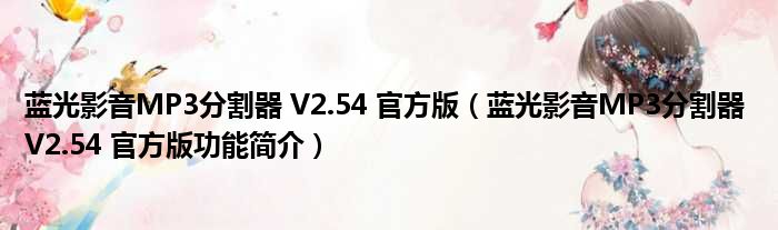 蓝光影音MP3分割器 V2.54 官方版(蓝光影音MP3分割器 V2.54 官方版功能简介)