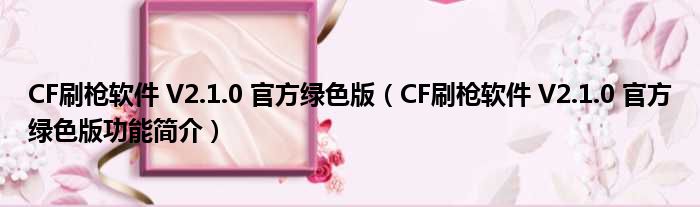 CF刷枪软件 V2.1.0 官方绿色版(CF刷枪软件 V2.1.0 官方绿色版功能简介)