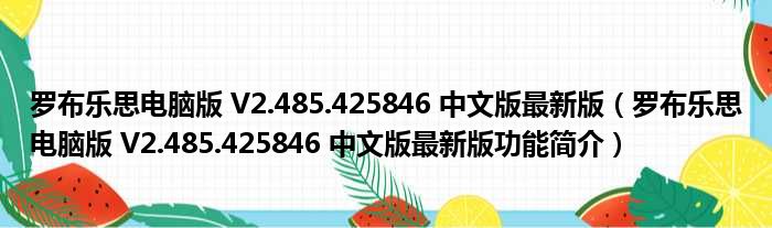罗布乐思电脑版 V2.485.425846 中文版最新版(罗布乐思电脑版 V2.485.425846 中文版最新版功能简介)