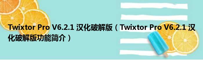 Twixtor Pro V6.2.1 汉化破解版(Twixtor Pro V6.2.1 汉化破解版功能简介)