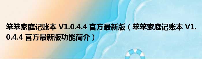 导读 大家好,关于笨笨家庭记账本 V1 0 4 4 官方最新版,笨笨家庭记账本 V1 0 4 4 官方最新版功能简介这个很多人还不知道,小勒来为大家解答以
