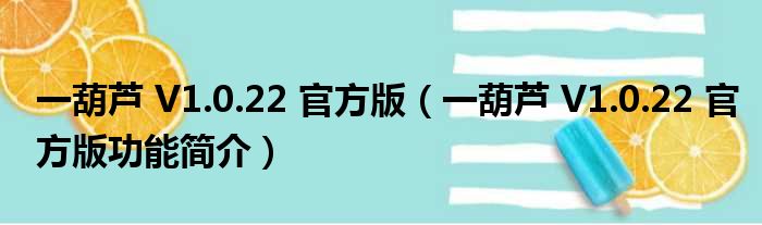 导读 大家好,关于一葫芦 V1 0 22 官方版,一葫芦 V1 0 22 官方版功能简介这个很多人还不知道,小勒来为大家解答以上的问题,现在让我们一起来