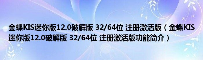 金蝶KIS迷你版12.0破解版 32/64位 注册激活版(金蝶KIS迷你版12.0破解版 32/64位 注册激活版功能简介)