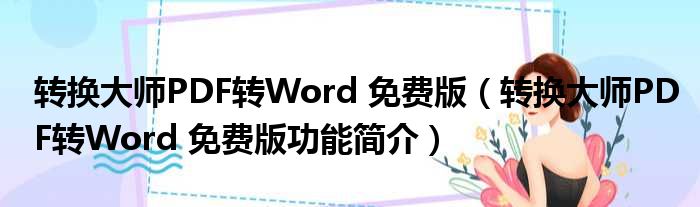 转换大师PDF转Word 免费版(转换大师PDF转Word 免费版功能简介)
