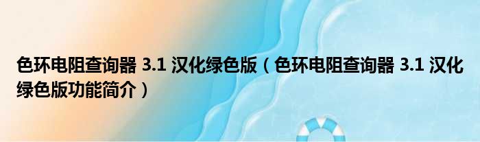色环电阻查询器 3.1 汉化绿色版(色环电阻查询器 3.1 汉化绿色版功能简介)