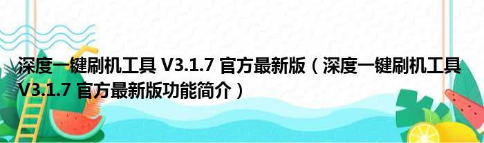 导读 大家好,关于深度一键刷机工具 V3 1 7 官方最新版,深度一键刷机工具 V3 1 7 官方最新版功能简介这个很多人还不知道,小勒来为大家解答以