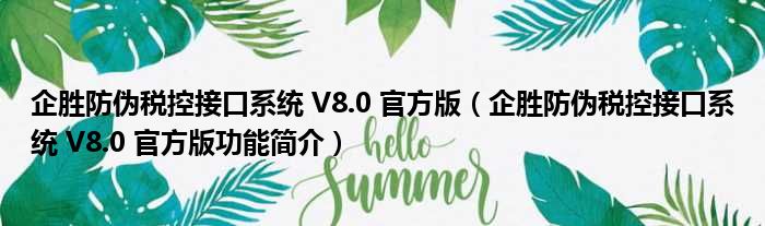 企胜防伪税控接口系统 V8.0 官方版(企胜防伪税控接口系统 V8.0 官方版功能简介)
