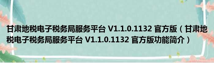 甘肃地税电子税务局服务平台 V1.1.0.1132 官方版(甘肃地税电子税务局服务平台 V1.1.0.1132 官方版功能简介)
