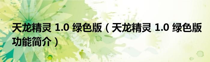 天龙精灵 1.0 绿色版(天龙精灵 1.0 绿色版功能简介)