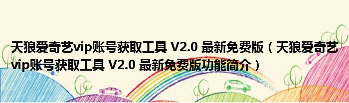 导读 大家好,关于天狼爱奇艺vip账号获取工具 V2 0 最新免费版,天狼爱奇艺vip账号获取工具 V2 0 最新免费版功能简介这个很多人还不知道,小勒