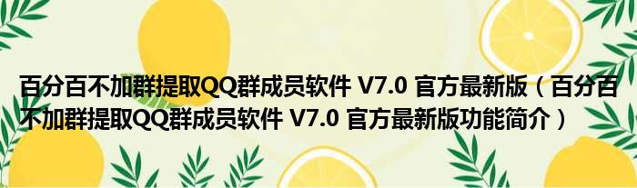 百分百不加群提取QQ群成员软件 V7.0 官方最新版(百分百不加群提取QQ群成员软件 V7.0 官方最新版功能简介)