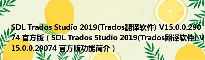 SDL Trados Studio 2019(Trados翻译软件) V15.0.0.29074 官方版(SDL Trados Studio 2019(Trados翻译软件) V15.0.0.29074 官方版功能简介)
