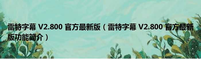 雷特字幕 V2.800 官方最新版(雷特字幕 V2.800 官方最新版功能简介)