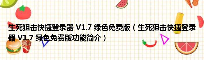 导读 大家好,关于生死狙击快捷登录器 V1 7 绿色免费版,生死狙击快捷登录器 V1 7 绿色免费版功能简介这个很多人还不知道,小勒来为大家解答以