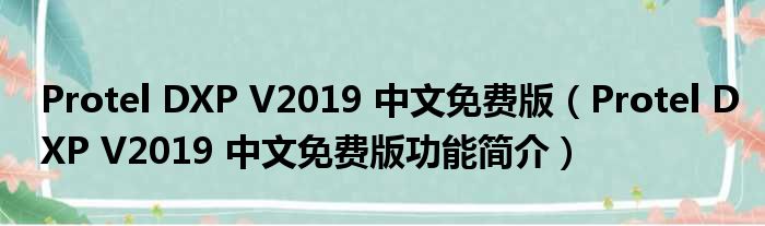 Protel DXP V2019 中文免费版(Protel DXP V2019 中文免费版功能简介)