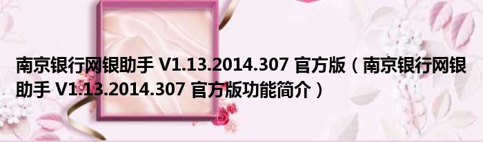 南京银行网银助手 V1.13.2014.307 官方版(南京银行网银助手 V1.13.2014.307 官方版功能简介)