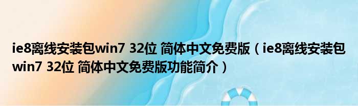 ie8离线安装包win7 32位 简体中文免费版(ie8离线安装包win7 32位 简体中文免费版功能简介)