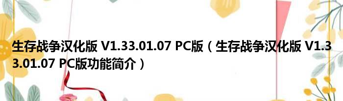导读 大家好,关于生存战争汉化版 V1 33 01 07 PC版,生存战争汉化版 V1 33 01 07 PC版功能简介这个很多人还不知道,小勒来为大家解答以上的问
