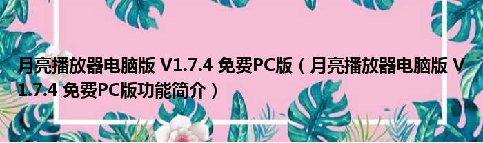 月亮播放器电脑版 V1.7.4 免费PC版(月亮播放器电脑版 V1.7.4 免费PC版功能简介)