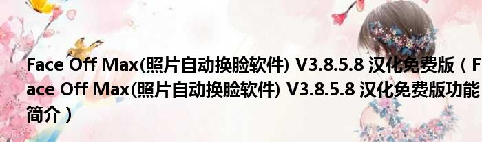 Face Off Max(照片自动换脸软件) V3.8.5.8 汉化免费版(Face Off Max(照片自动换脸软件) V3.8.5.8 汉化免费版功能简介)