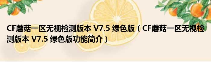 CF蘑菇一区无视检测版本 V7.5 绿色版(CF蘑菇一区无视检测版本 V7.5 绿色版功能简介)