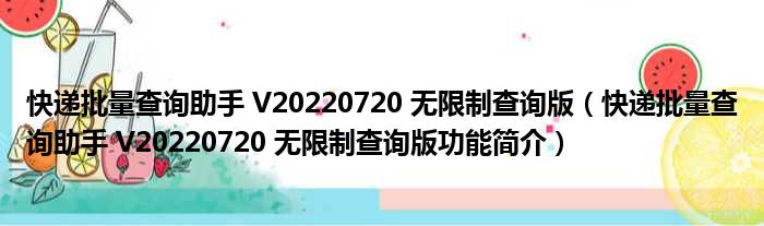 快递批量查询助手 V20220720 无限制查询版(快递批量查询助手 V20220720 无限制查询版功能简介)
