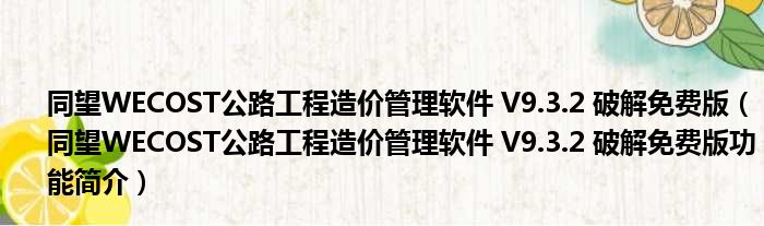 同望WECOST公路工程造价管理软件 V9.3.2 破解免费版(同望WECOST公路工程造价管理软件 V9.3.2 破解免费版功能简介)
